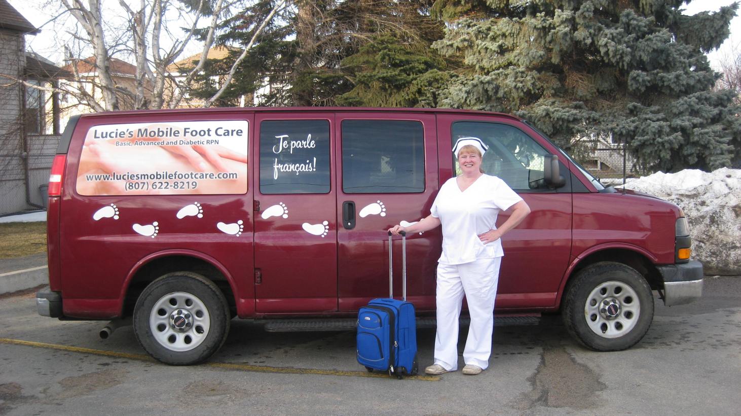 I am an independent foot care provider. Feet can influence the physical, psychological and social well being of individuals. I can help prevent and alleviate pain, disability related to the feet and reduce the likelihoods of falling. I provide affordable, compassionate foot care in retirement homes, senior communities, hospitals, and private residences. All appointments are up to one hour in duration. Contact me through e-mail for further information: luciesmobilefootcare@gmail.com.Bilingual in French and English. Pet friendly nurse.